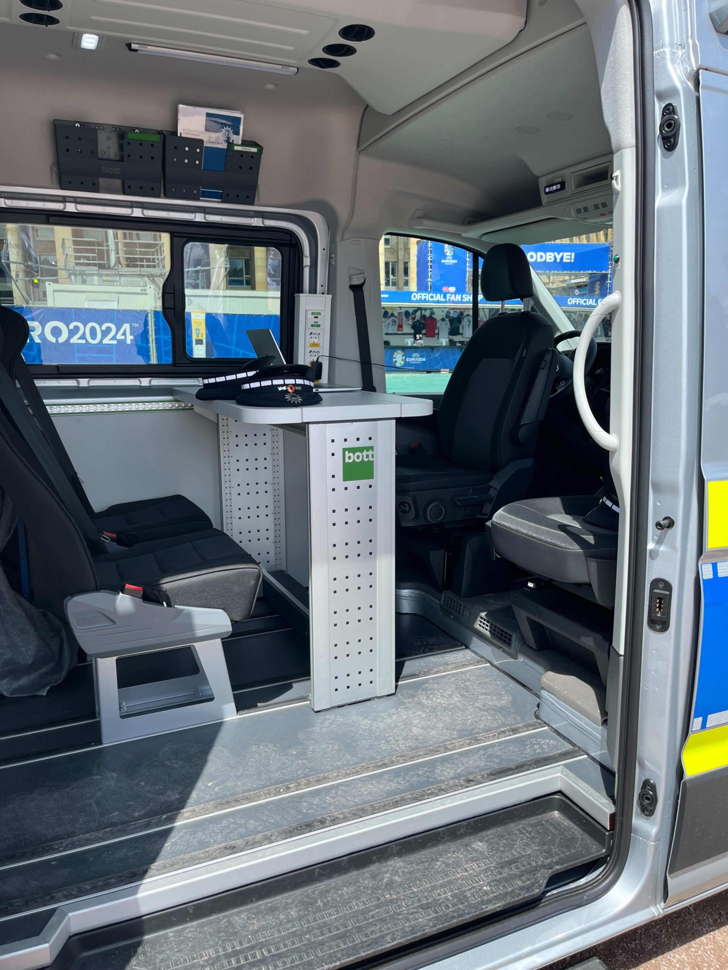 Die Polizei Stuttgart sorgt Tag und Nacht für die Sicherheit aller Bürger. Was viele Menschen für selbstverständlich nehmen, ist für die Einsatzkräfte nicht immer leicht. Mit der neuen Mobilen Wache – ausgestattet mit bott vario3 Fahrzeugeinrichtung – sind die Polizisten rasch und unkompliziert an den Orten im Einsatz, an denen ihre Unterstützung benötigt wird. Das Fahrzeug soll nicht nur bei Großveranstaltungen und Versammlungen, sondern auch auf Wochenmärkten und an lokalen Kriminalitätsschwerpunkten eingesetzt werden. So können die Polizeibeamten im öffentlichen Raum schnell, flexibel und professionell auf unterschiedliche Sachverhalte reagieren.